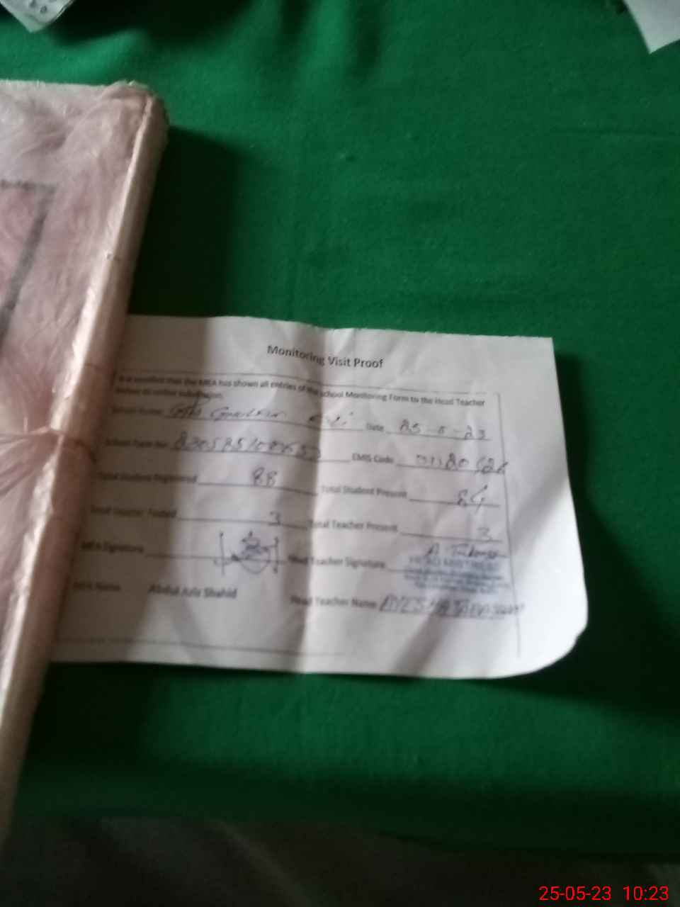 | Attendance Register | Head Teacher | MEA with School | Visit Proof |