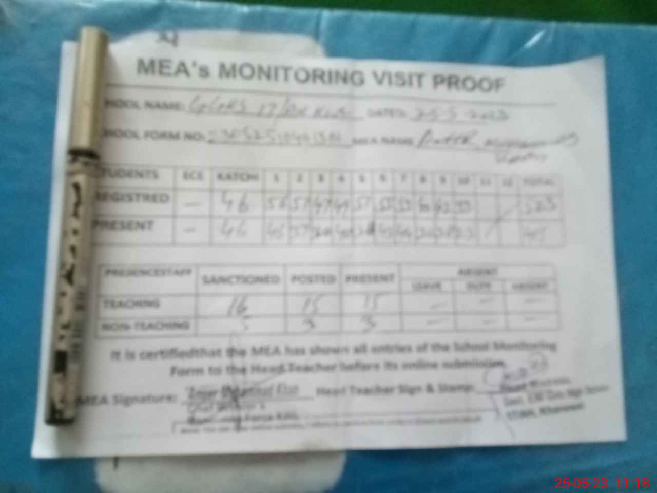 | Attendance Register | Head Teacher | MEA with School | Visit Proof |