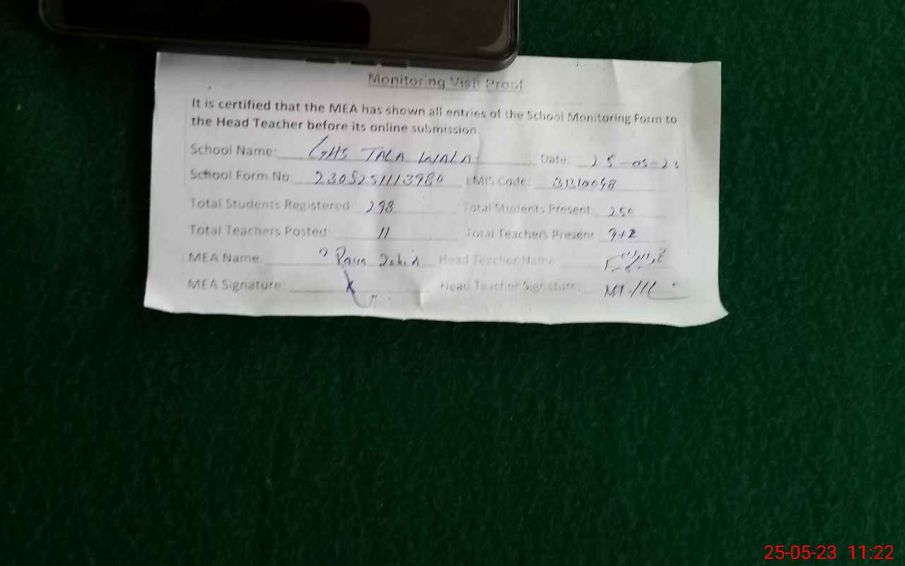 | EMIS Code: 31310048 | Name of School: GHS TALA WALA | |||