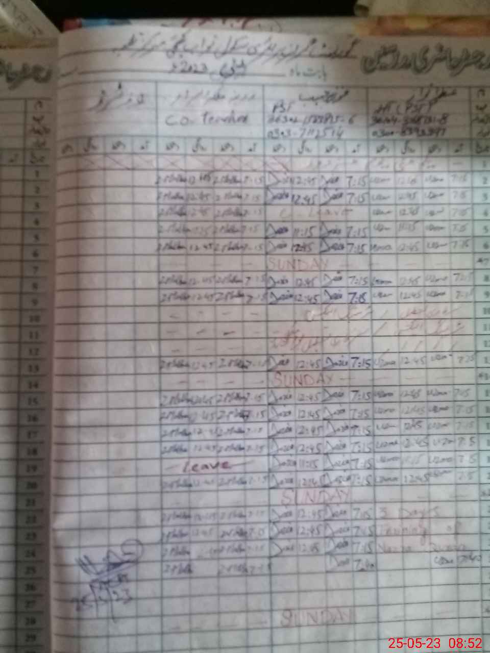 | CNIC | Full Name | Designation | R/C | Absence during last cal. month |