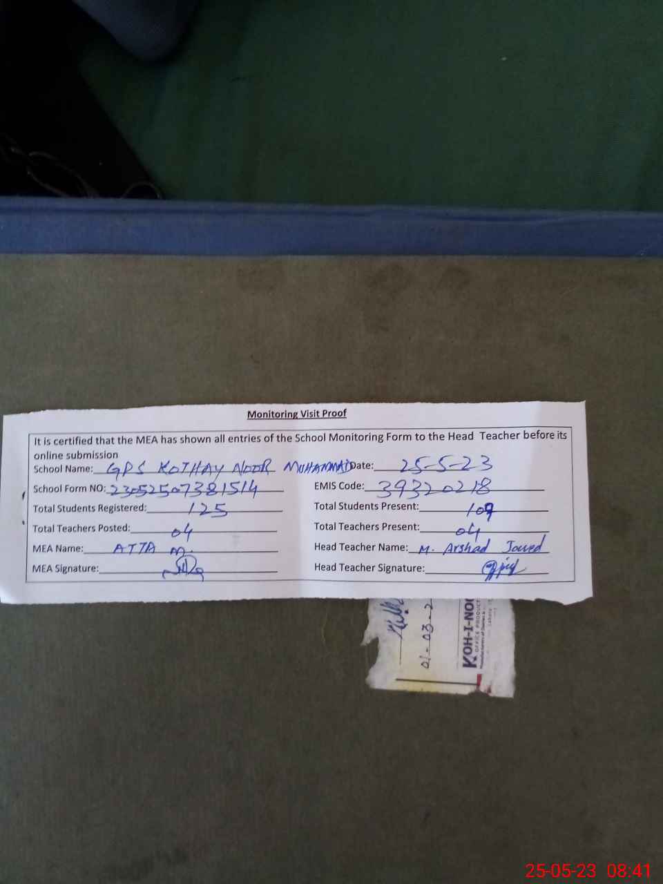 | EMIS Code: 39320218 | Name of School: GPS KOTHAY NOOR MUHAMMAD | |||