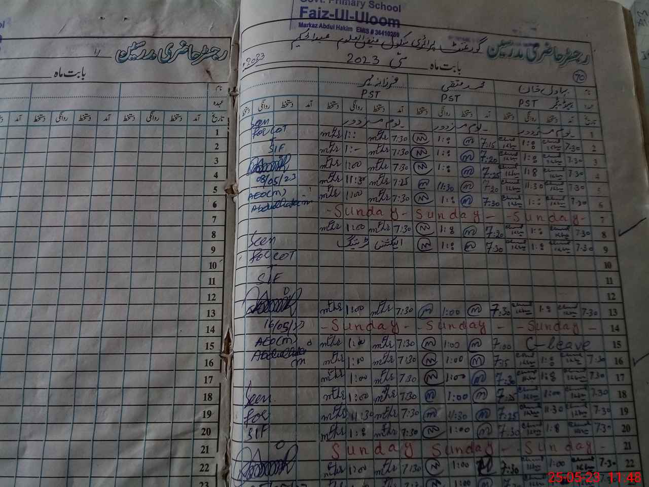 | Name: BH**** KH**** Designation: (School Headmaster's/Headmistress's) PST Phone/Cell Number: 03**** |