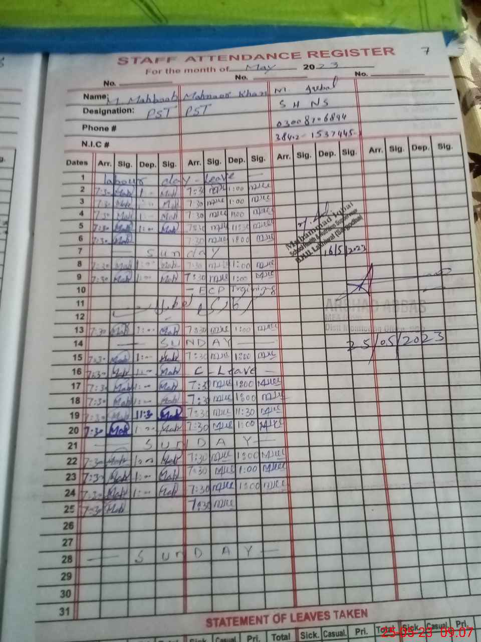 | Name: MU**** JU**** Designation: (School Headmaster's/Headmistress's) PST Phone/Cell Number: 03**** |