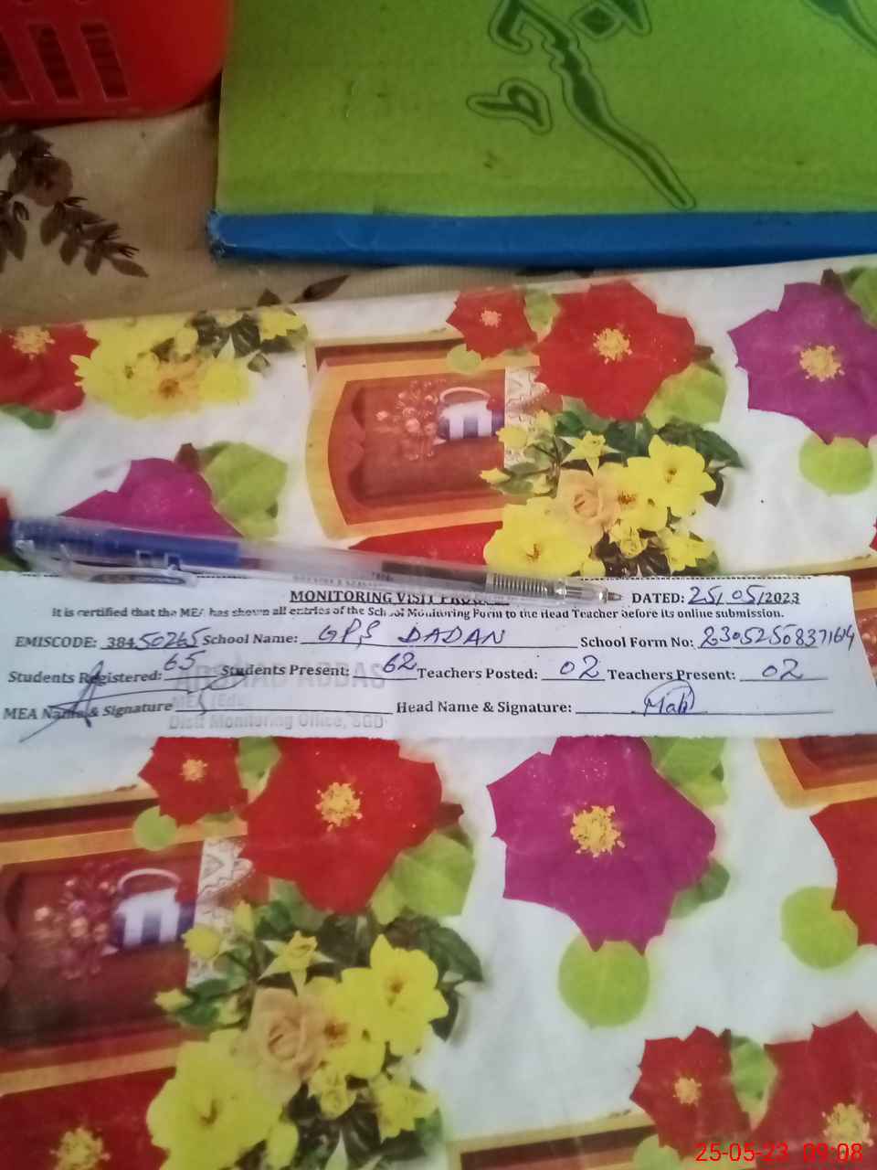| Attendance Register | Head Teacher | MEA with School | Visit Proof |