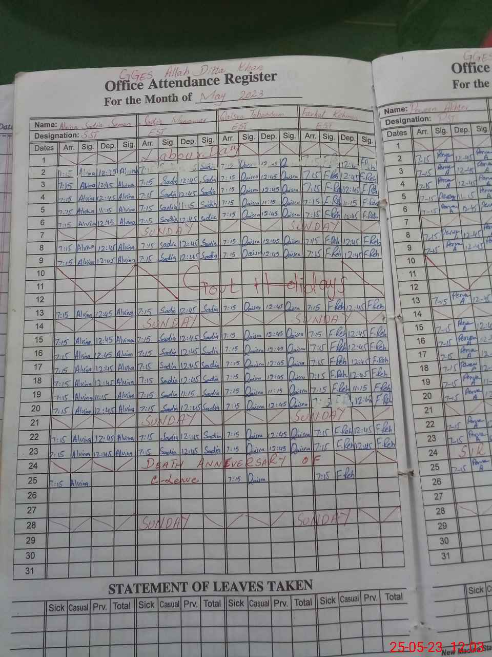 | 31**** | Na**** Sa**** | PST | Regular | 0 | 0 | 0 | 0 | 0 | 0 | 0 | 0 | 0 | Exam Duty |