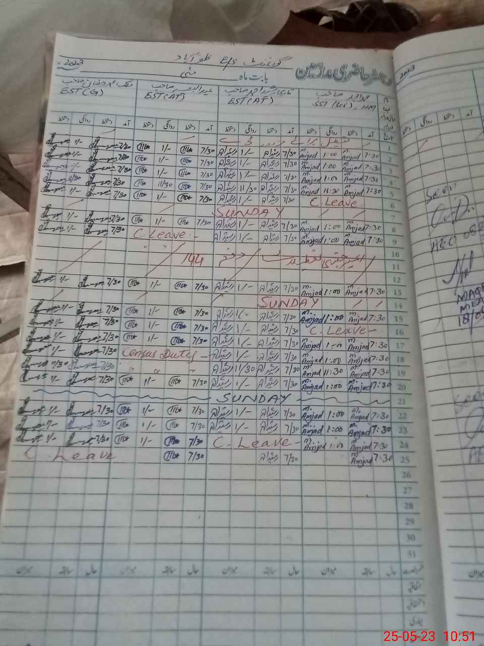 | CNIC | Full Name | Designation | R/C | Absence During Last Calender Month |