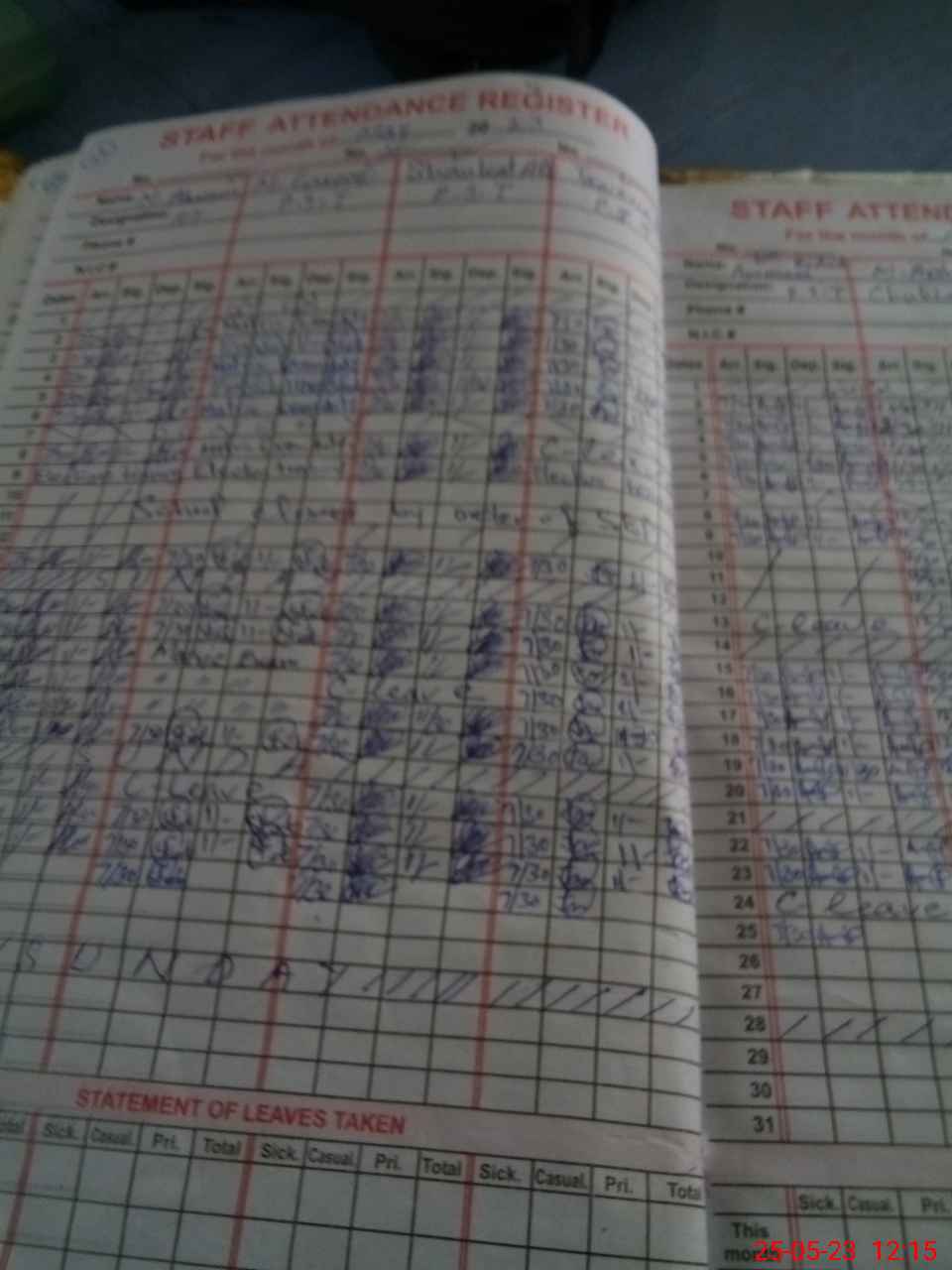 | CNIC | Full Name | Designation | R/C | Absence During Last Calender Month |