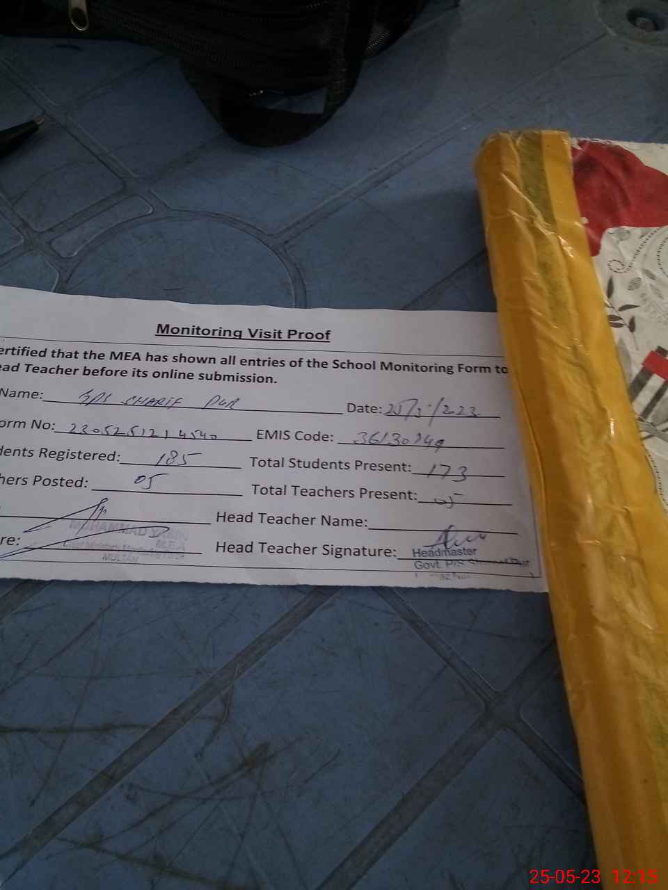 | Attendance Register | Head Teacher | MEA with School | Visit Proof |