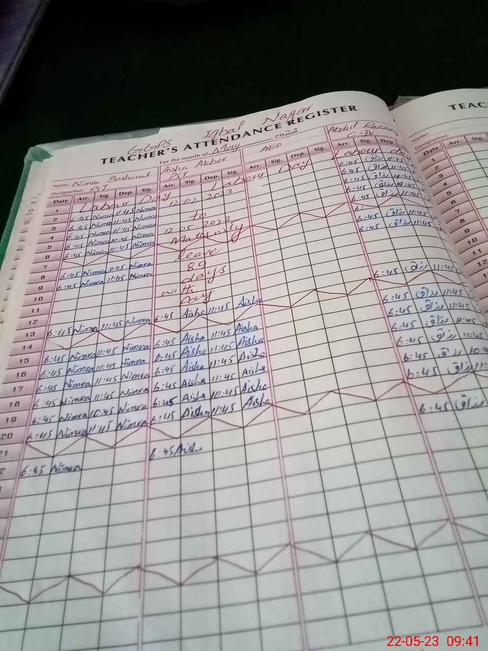 | Monitoring Date: 22-05-2023 | Start Time: 22-05-2023 09:23 AM | End Time: 22-05-2023 10:07 AM | Name of MEA: Mu**** Ak**** Ba**** | |
