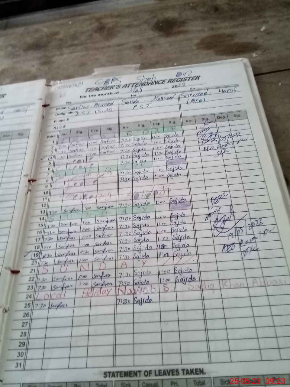 | Name: Sa**** Ah**** Designation: (School Headmaster's/Headmistress's) ESE Phone/Cell Number: 03**** |