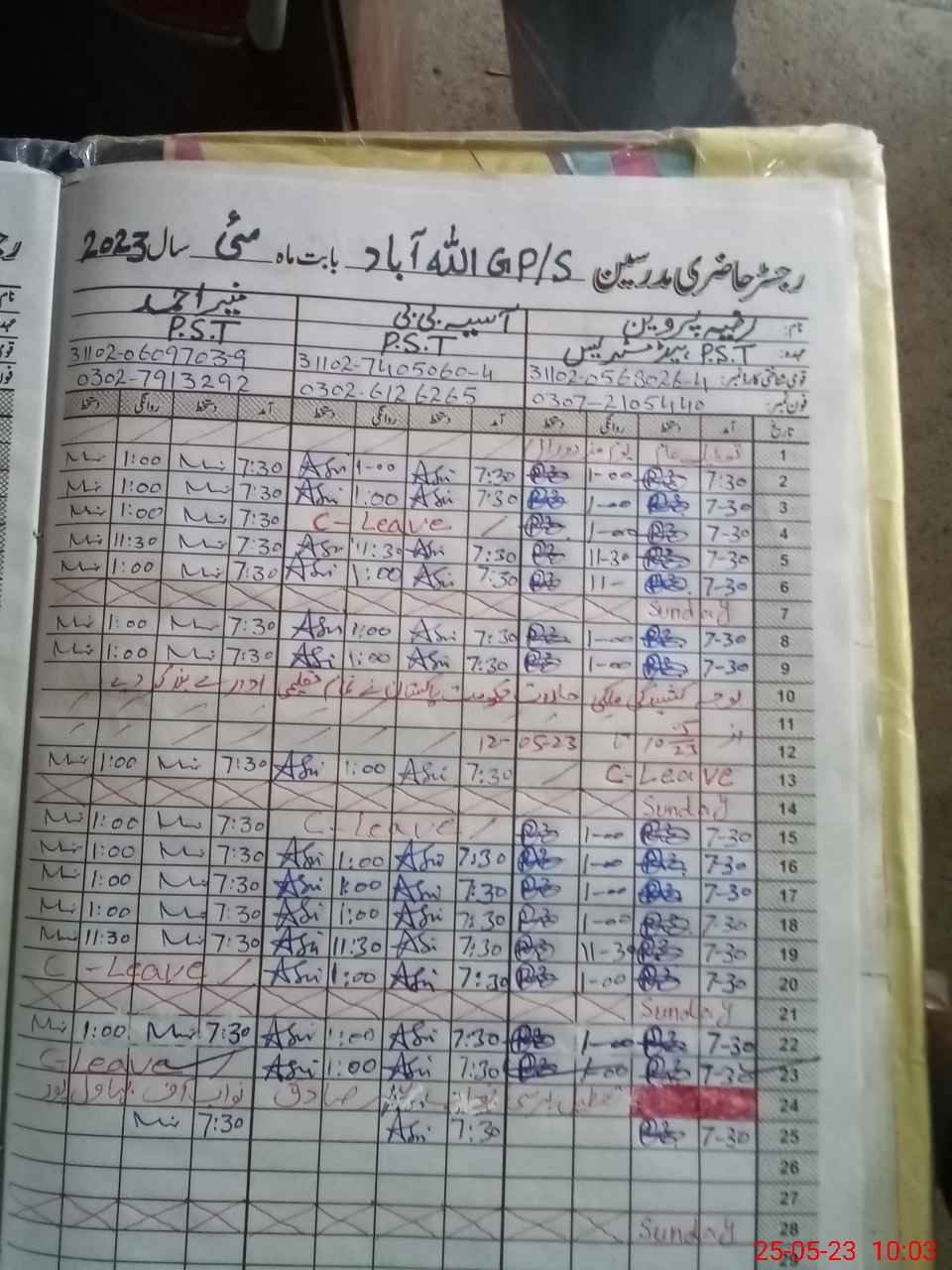 | Name: RA**** PE**** Designation: (School Headmaster's/Headmistress's) P S T Phone/Cell Number: 03**** |