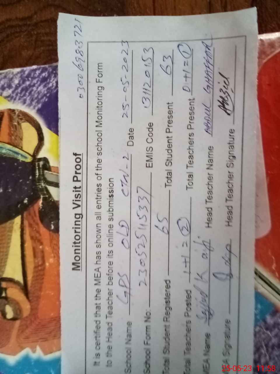 | EMIS Code: 31120153 | Name of School: GPS OLD CHISHTIAN NO. 2 | |||