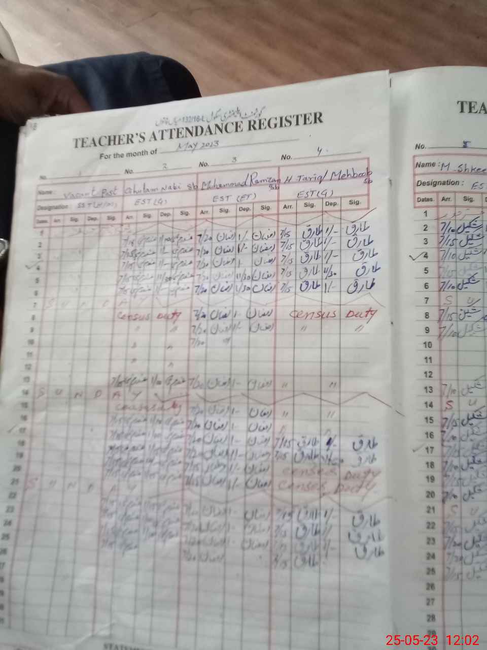 | CNIC | Full Name | Designation | R/C | Absence During Last Calender Month |