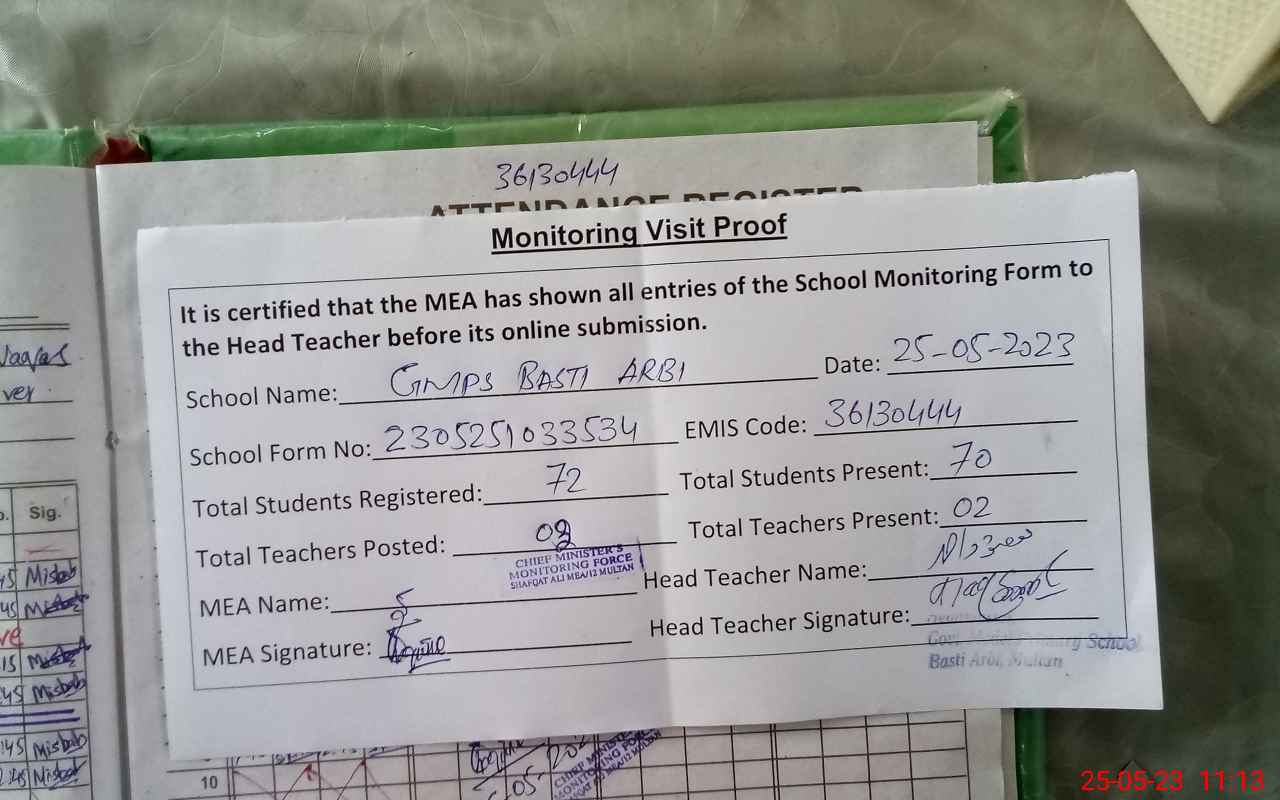 | EMIS Code: 36130444 | Name of School: GMPS BASTI ARBI MUKHDOOM RASHED | |||