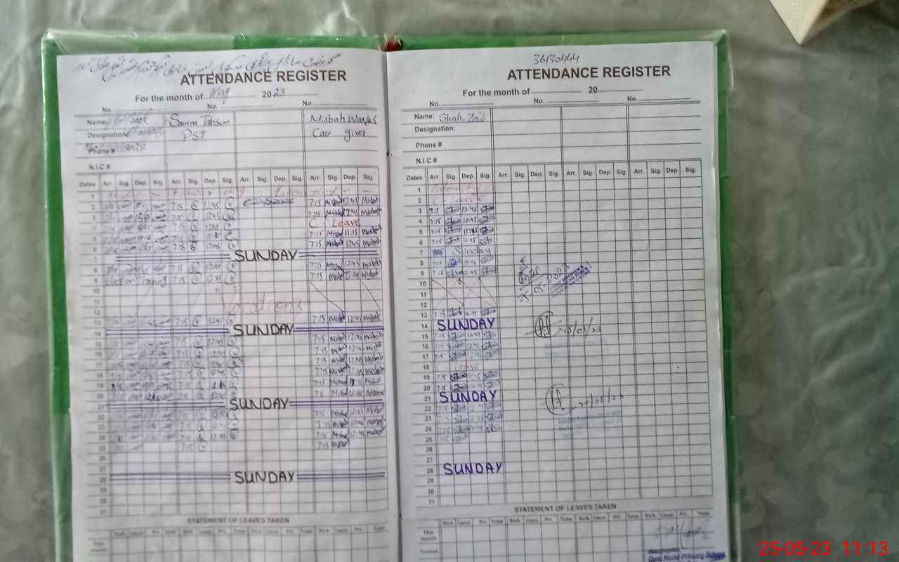 | CNIC | Full Name | Designation | R/C | Absence During Last Calender Month |