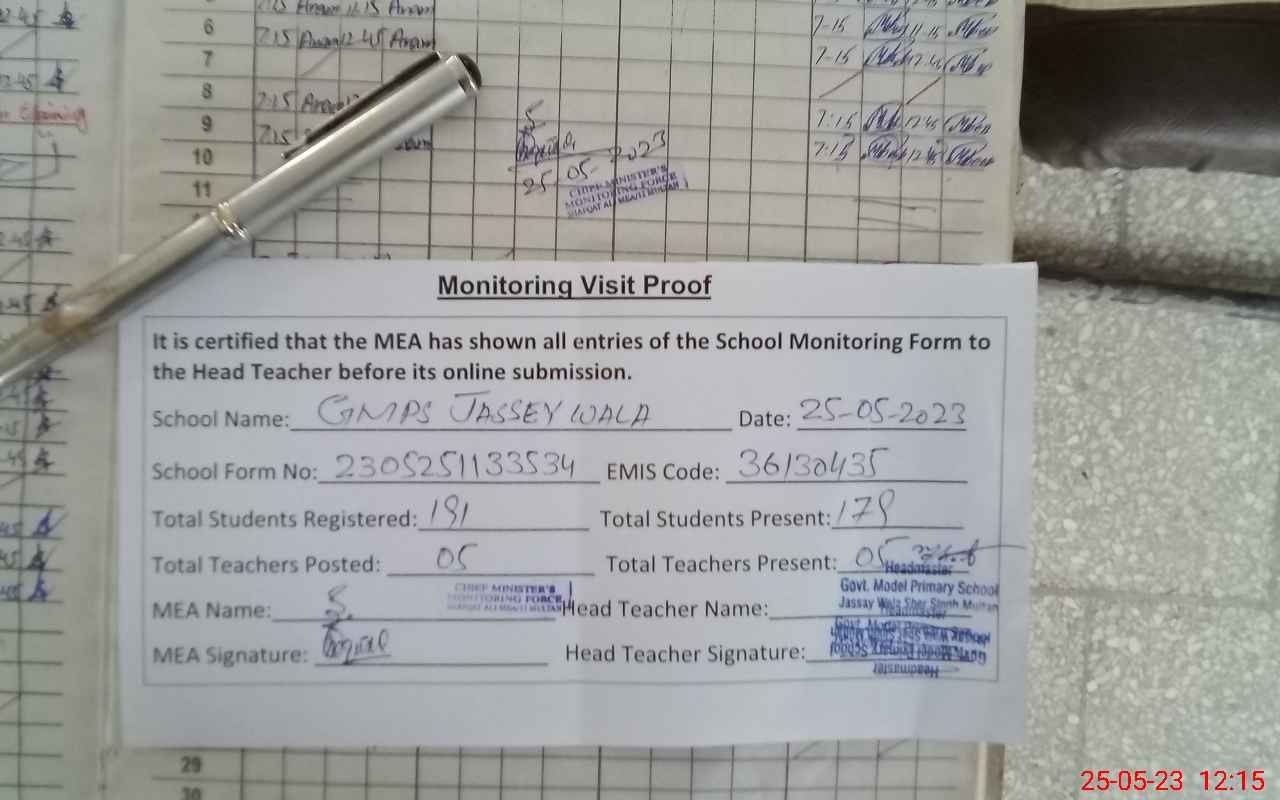| EMIS Code: 36130435 | Name of School: GMPS JASSAY WALA MULTAN | |||