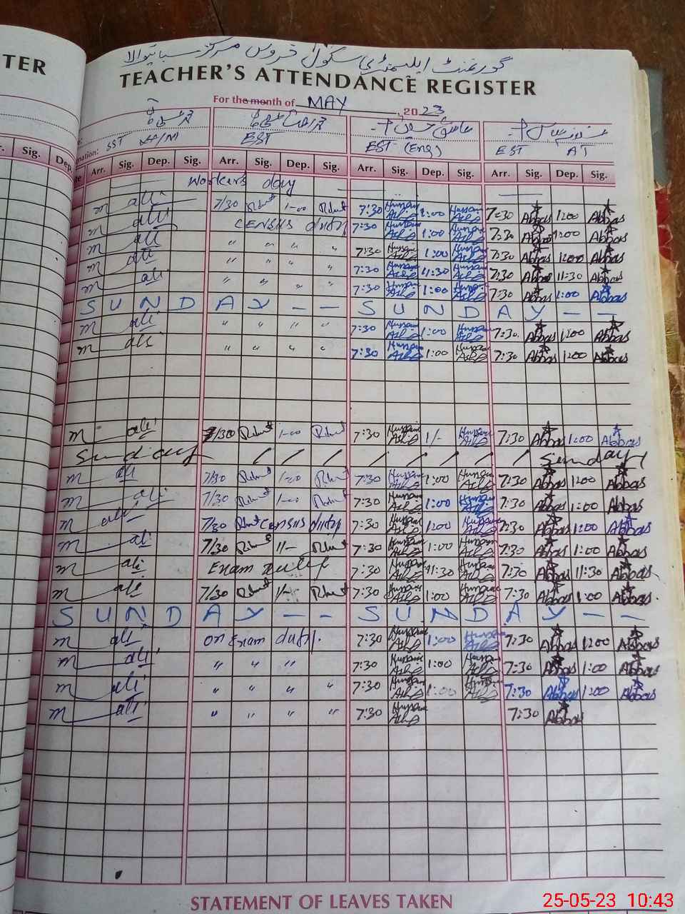 | Remarks (Use Separate Page if Required): Muhammad Ali Khan SST is a present | |||||