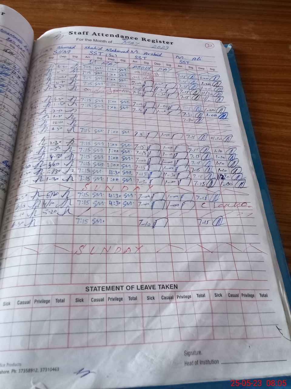 | 31**** | Ha**** Uz**** Ah**** | Regular | 0 | 6 | 0 | 0 | 0 | 0 | 0 | 0 | 0 | Exam Duty | |