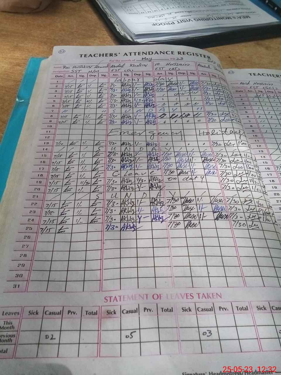 | Attendance Register | Head Teacher | MEA with School | Visit Proof |