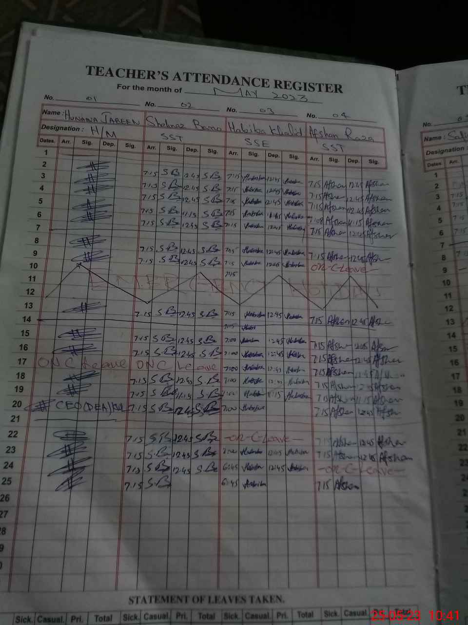 | CNIC | Full Name | Designation | R/C | Absence During Last Calender Month |