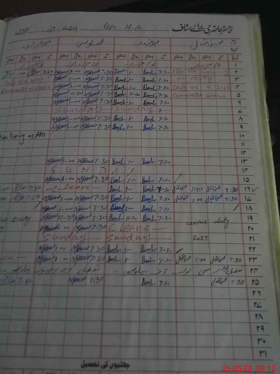 | CNIC | Full Name | Designation | R/C | Absence During Last Calender Month |