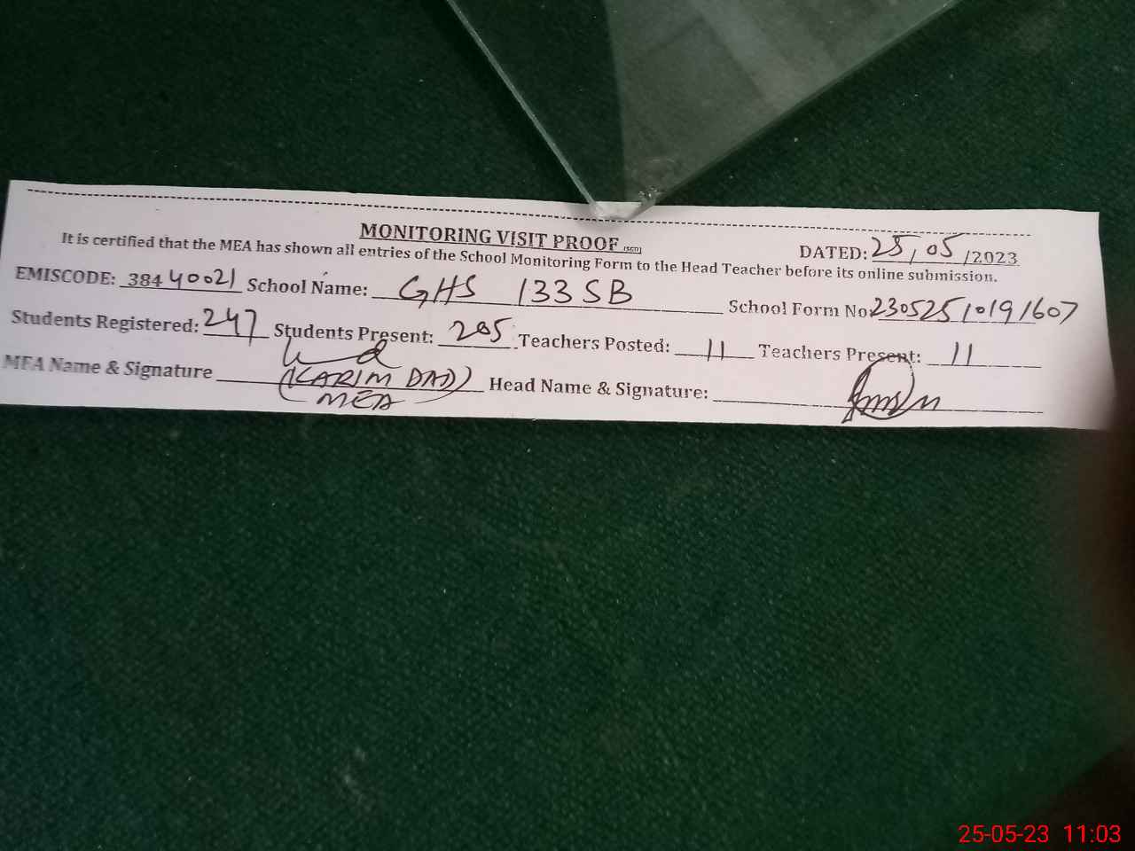 | EMIS Code: 38440021 | Name of School: GHS CHAK NO 133 SB | |||