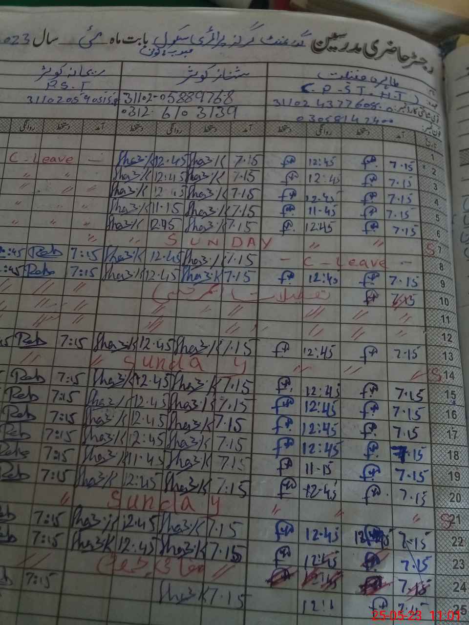 | CNIC | Full Name | Designation | R/C | Absence During Last Calender Month |