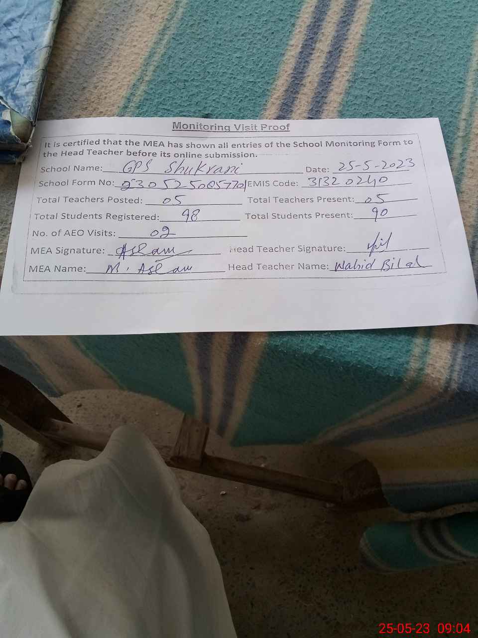 | EMIS Code: 31320240 | Name of School: GPS SHUKRANI | |||