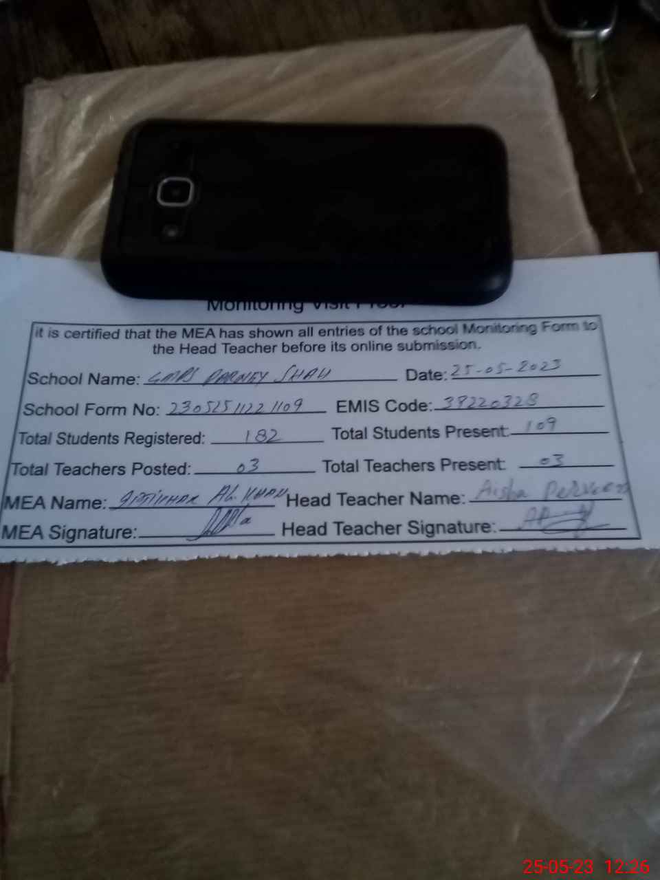 | Attendance Register | Head Teacher | MEA with School | Visit Proof |
