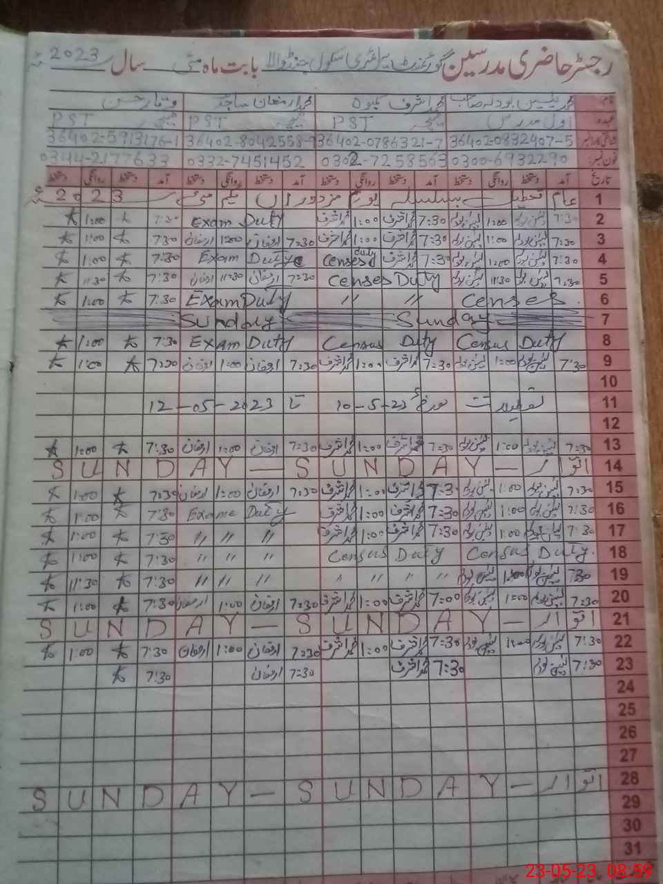 | CNIC | Full Name | Designation | R/C | Absence During Last Calender Month |