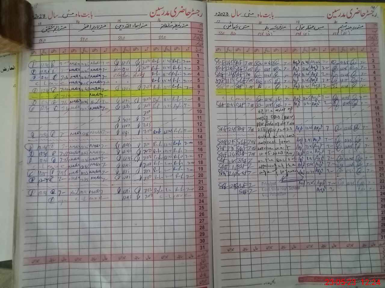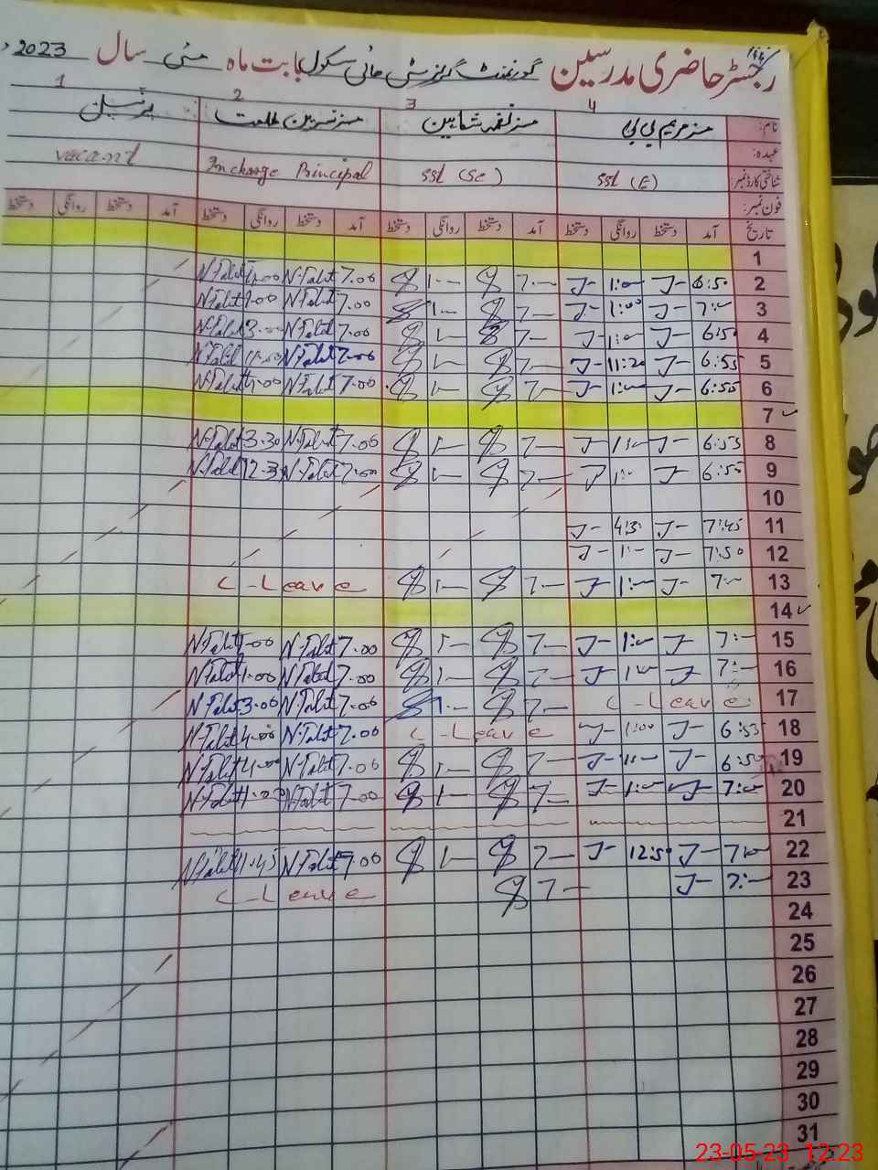 | CNIC | Full Name | Designation | R/C | Absence During Last Calender Month |