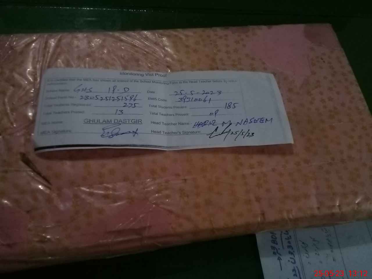 | Attendance Register | Head Teacher | MEA with School | Visit Proof |