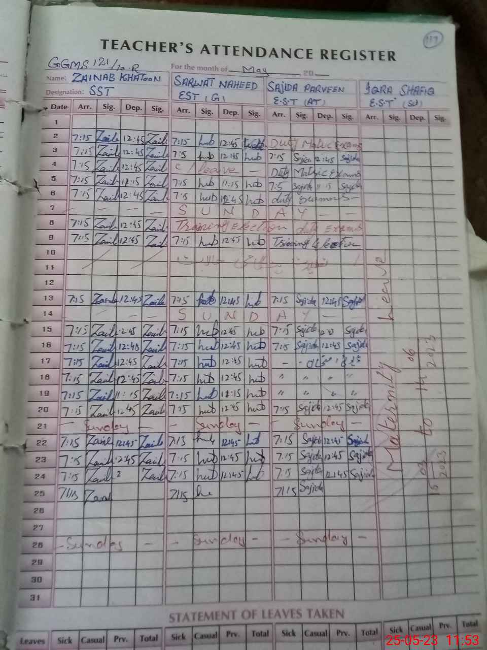 | 36**** | Zu**** Ko**** | PST | Regular | 0 | 0 | 0 | 0 | 0 | 0 | 0 | 0 | 0 | Maternity |