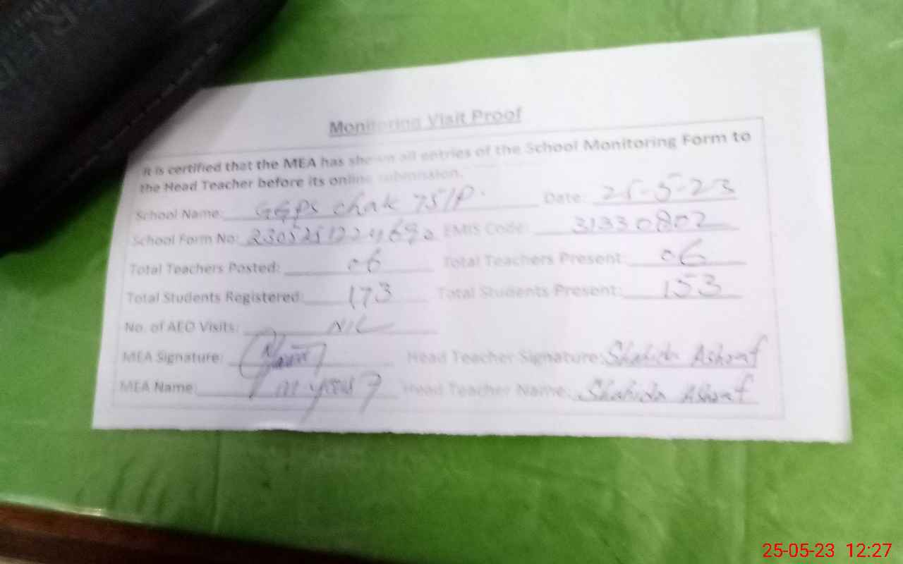 | EMIS Code: 31330802 | Name of School: GGPS CHAK 75/P | |||