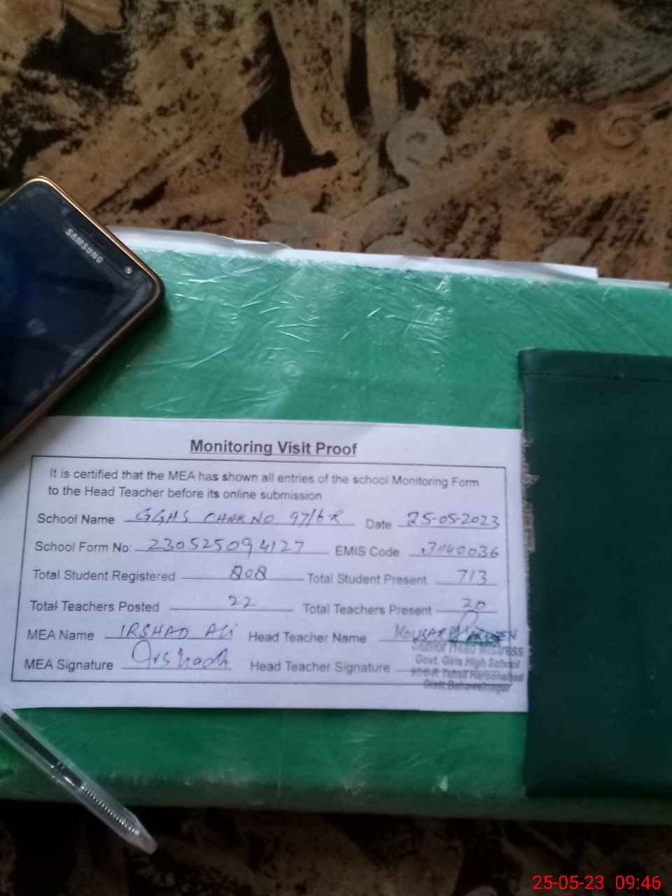 | EMIS Code: 31140036 | Name of School: GGHS CHAK NO. 97/6-R | |||