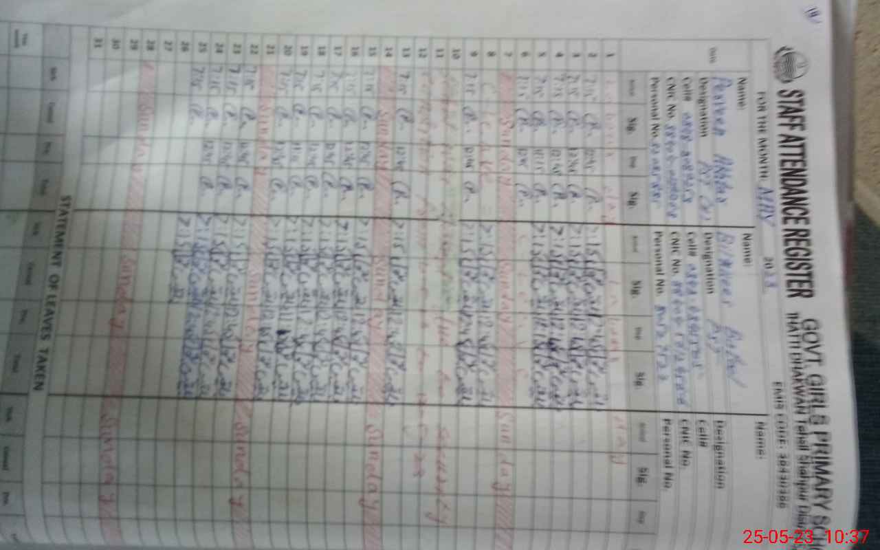 | Name: PA**** AK**** Designation: (School Headmaster's/Headmistress's) PST (Sc-Math) Phone/Cell Number: 03**** |
