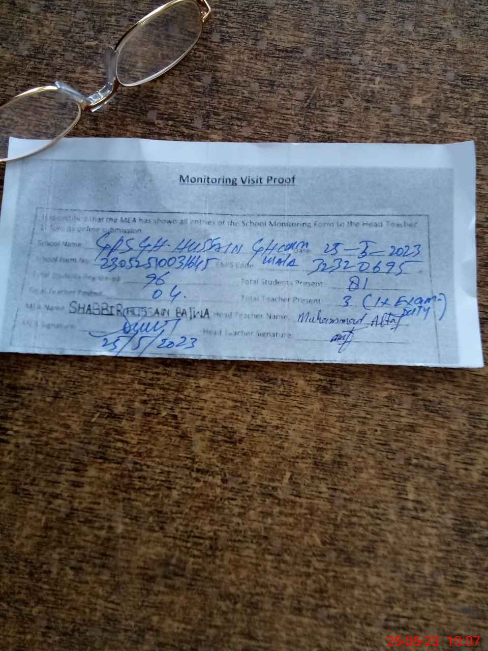 | Attendance Register | Head Teacher | MEA with School | Visit Proof |