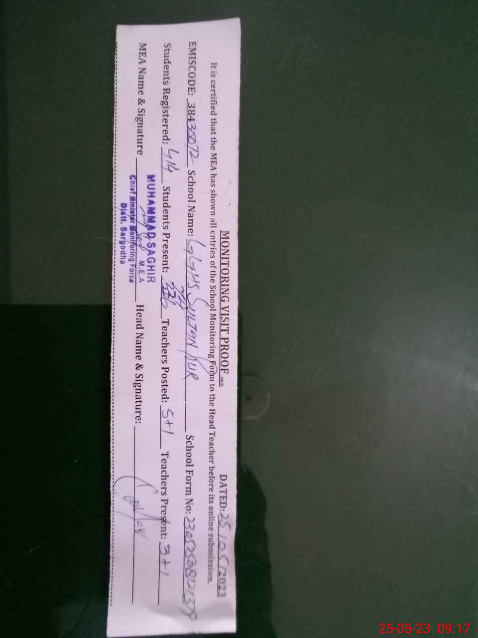 | EMIS Code: 38430072 | Name of School: GGHS SULTAN PUR | |||