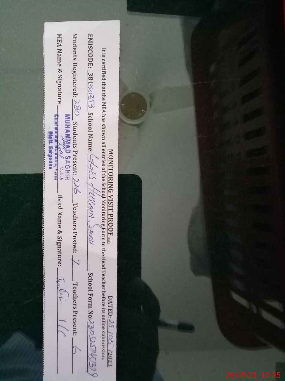 | Attendance Register | Head Teacher | MEA with School | Visit Proof |