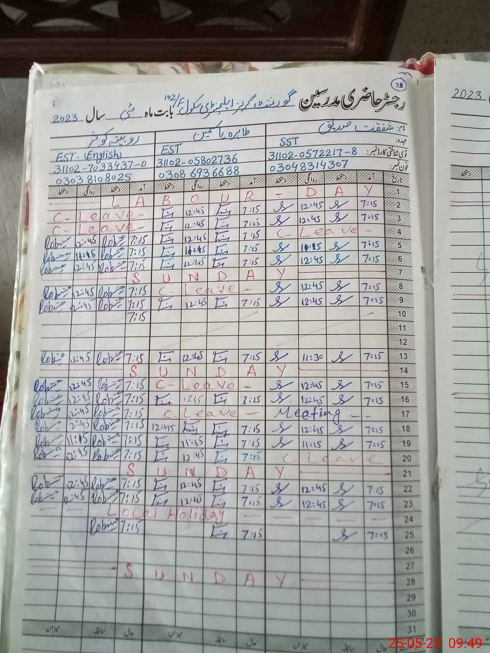 | Name: SH**** SA**** Designation: (School Headmaster's/Headmistress's) S.S.E.ARTS Phone/Cell Number: 03**** |