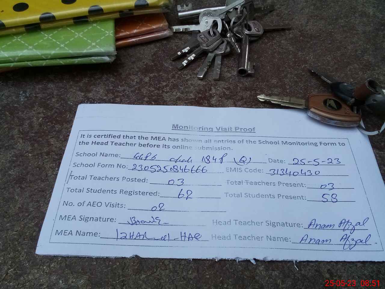 | Certified that this School was Inspected by the Undersigned MEA/DMO Today and the Information Stated Above is as Per Record. | |||||