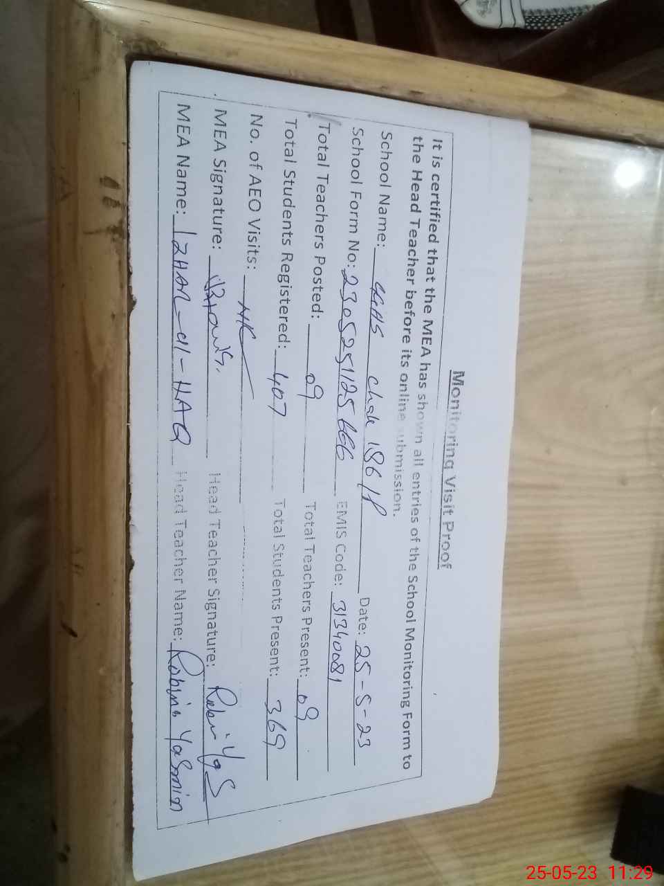 | Certified that this School was Inspected by the Undersigned MEA/DMO Today and the Information Stated Above is as Per Record. | |||||