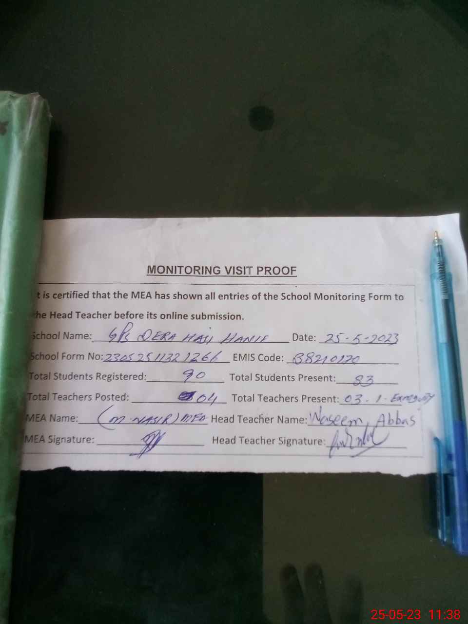 | Attendance Register | Head Teacher | MEA with School | Visit Proof |