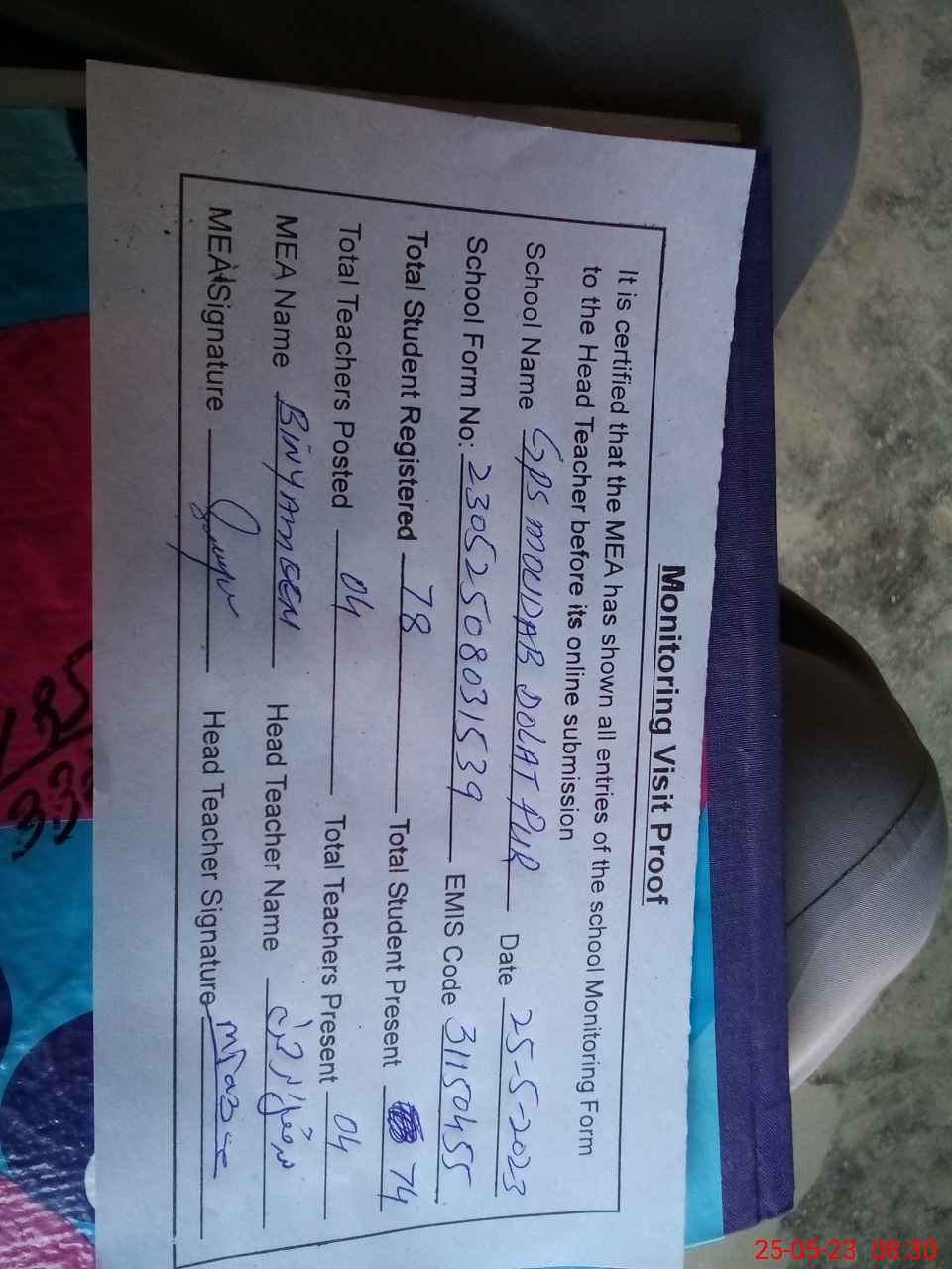 | EMIS Code: 31150455 | Name of School: GPS MUADDAB DOLAT PUR | |||