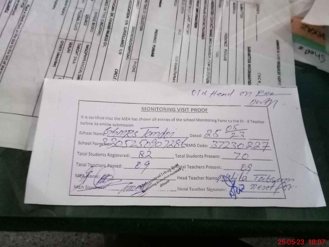 | Certified that this School was Inspected by the Undersigned MEA/DMO Today and the Information Stated Above is as Per Record. | |||||