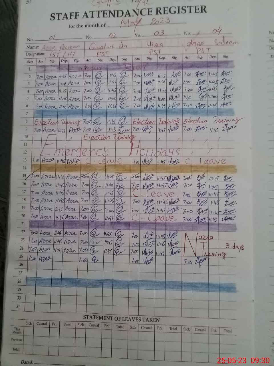 | Leave | Duty | Absent | Maternity | Medical | Ex- Pak |