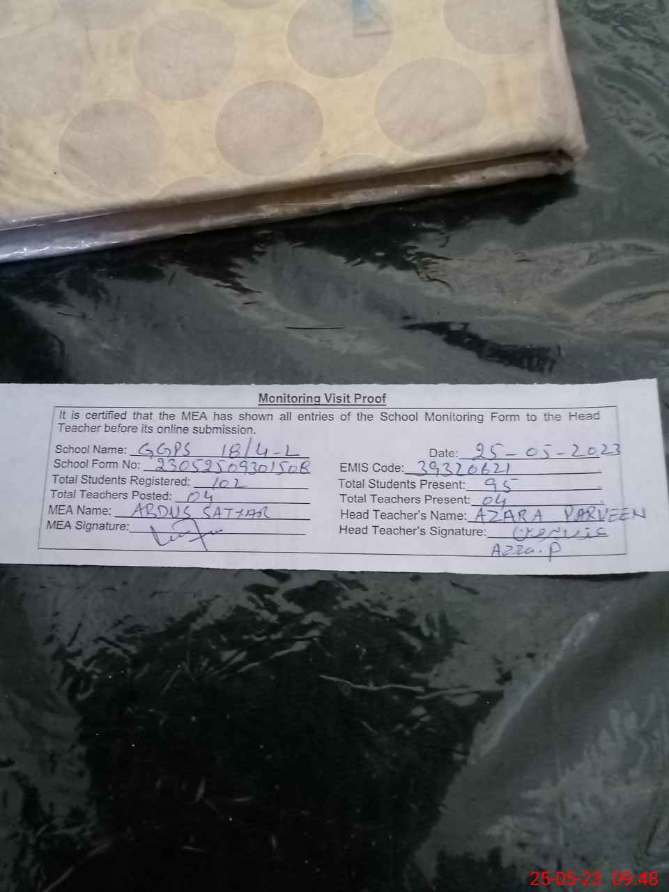 | Attendance Register | Head Teacher | MEA with School | Visit Proof |
