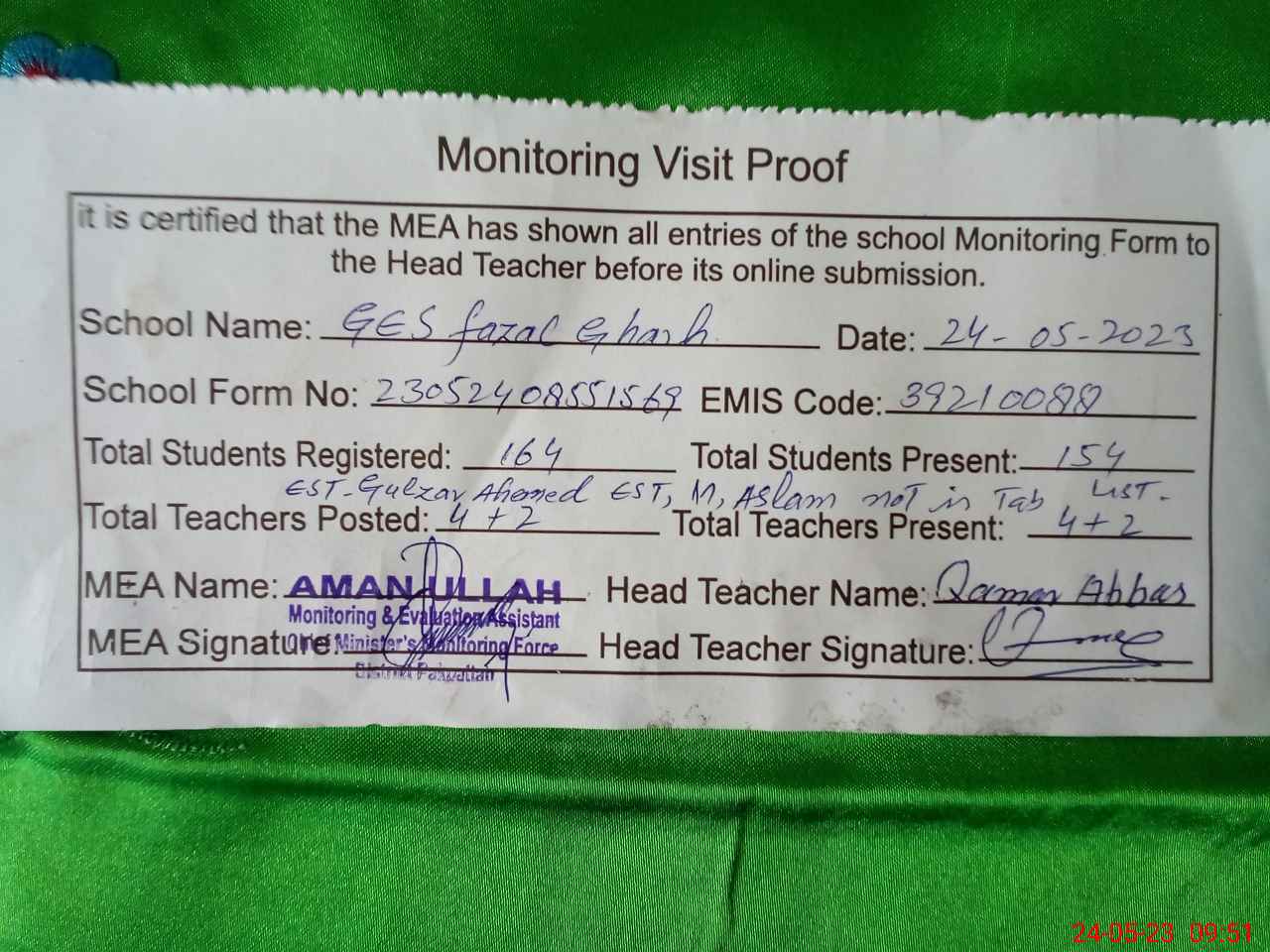 | EMIS Code: 39210088 | Name of School: GES FAZAL GARH P.O BOYLE GANJ | |||