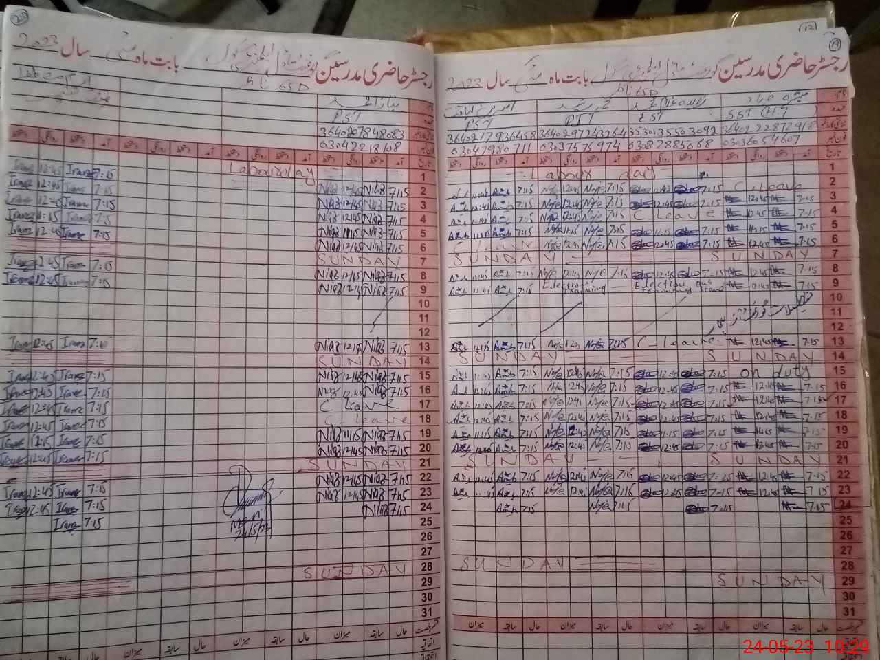 | CNIC | Full Name | Designation | R/C | Absence During Last Calender Month |