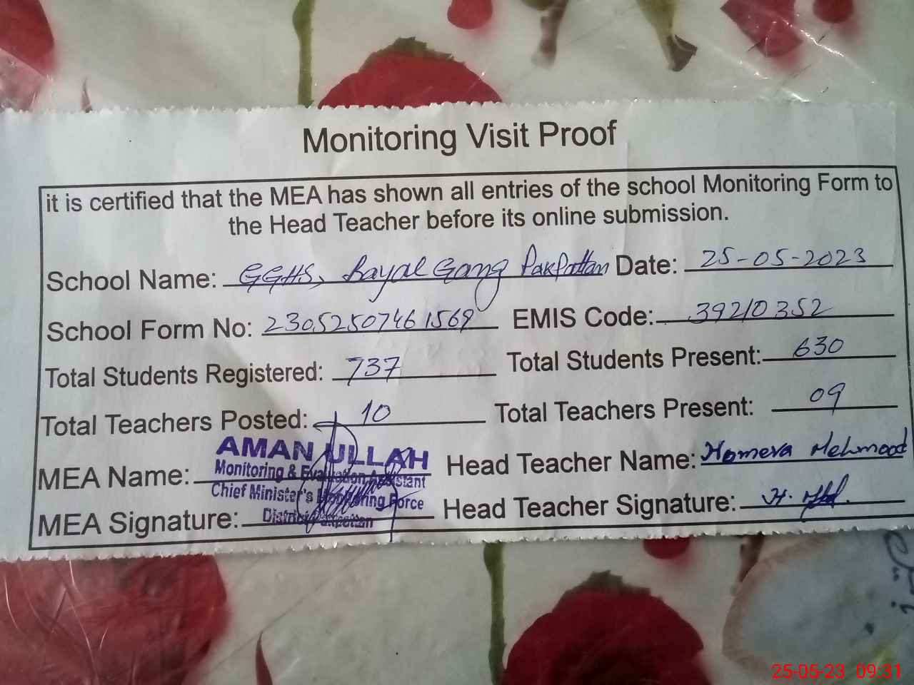| EMIS Code: 39210352 | Name of School: GGHS BAYAL GANJ PAKPATTAN | |||